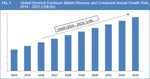 With industrial facilities making the switch to computerized systems, the electrical enclosure market is forecast to increase by almost six per cent between 2016 ? 2023.