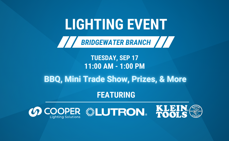 Join us at our Saint John, NB branch on October 22nd from 8am to 11am for an exciting Counter Day spotlighting our Supplier of the Month, Current Lighting. Enjoy a coffee, some muffins/donuts and connect with the team and learn more about what’s new from Current.