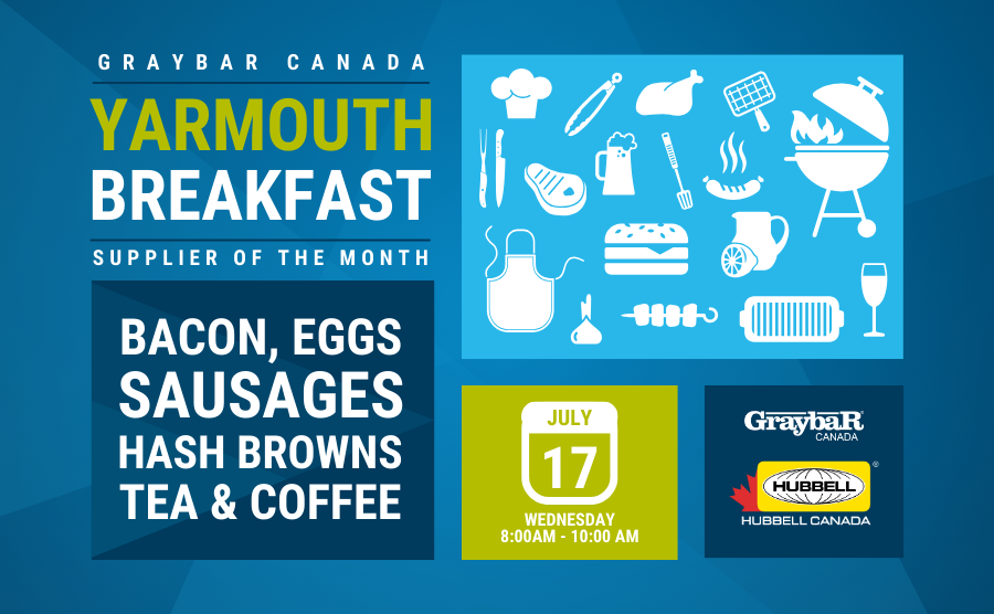 Good morning, Yarmouth! Join us for a delicious breakfast at the Yarmouth Branch on July 17th from 8:00am to 10:00am. Enjoy eggs, bacon, sausages, hashbrowns, coffee, and tea while learning more about our Supplier of the Month: Hubbell Canada. Founded in 1888 by Harvey Hubbell II, Hubbell has been at the forefront of electrical innovation with pioneering patents like the pull chain lamp socket and the separable plug and receptacle. Today, Hubbell continues to lead the industry, delivering high-quality, dependable utility and electrical solutions that ensure the safe, reliable, and efficient operation of critical infrastructure. Don't miss out on a great breakfast and a chance to learn more about Hubbell's innovative products! |