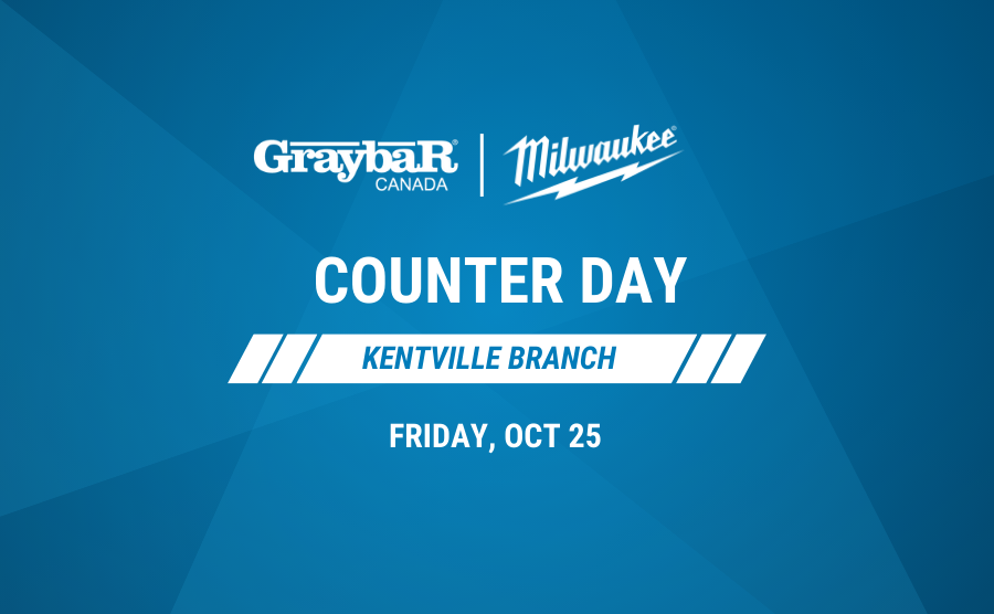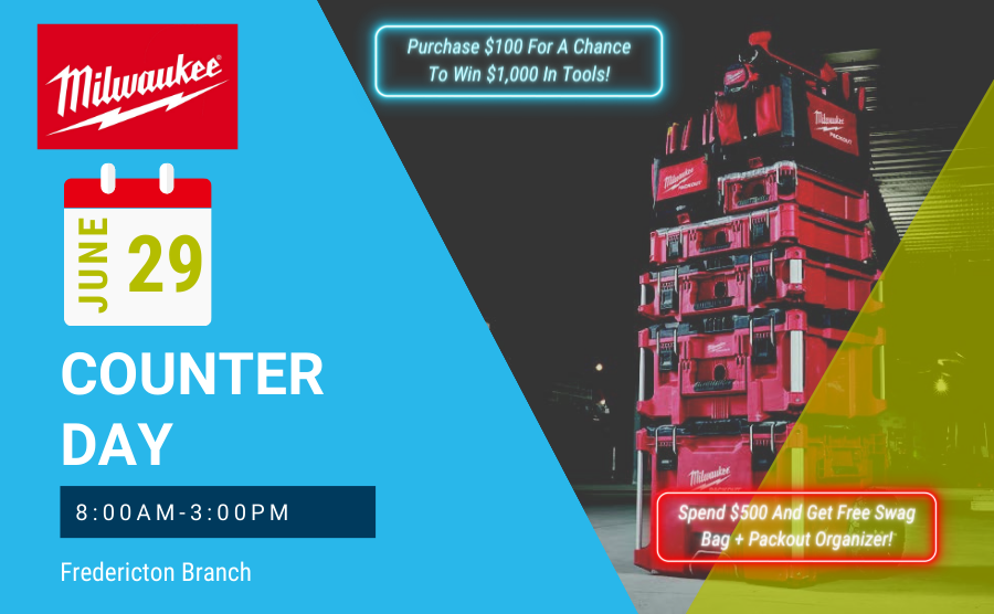 Join us at the Kentville Branch on October 25th for an awesome Counter Day. This event is extra special as we'll be highlighting Milwaukee! This is your chance enjoy Special Sales, learn about Milwaukee offerings and mingle with industry experts. |