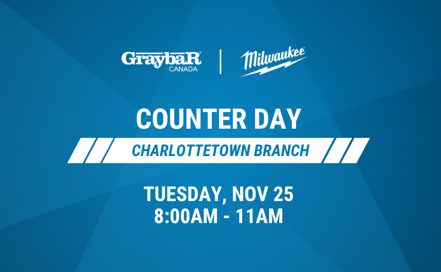 Join us at our Charlottetown branch on November 25th from 8am to 11am for an electric counter day featuring our power tool partner, Milwaukee. Discover their exclusive Q4 promos, available at Graybar Canada only, and tap into some great BOGOs when you make a purchase. |