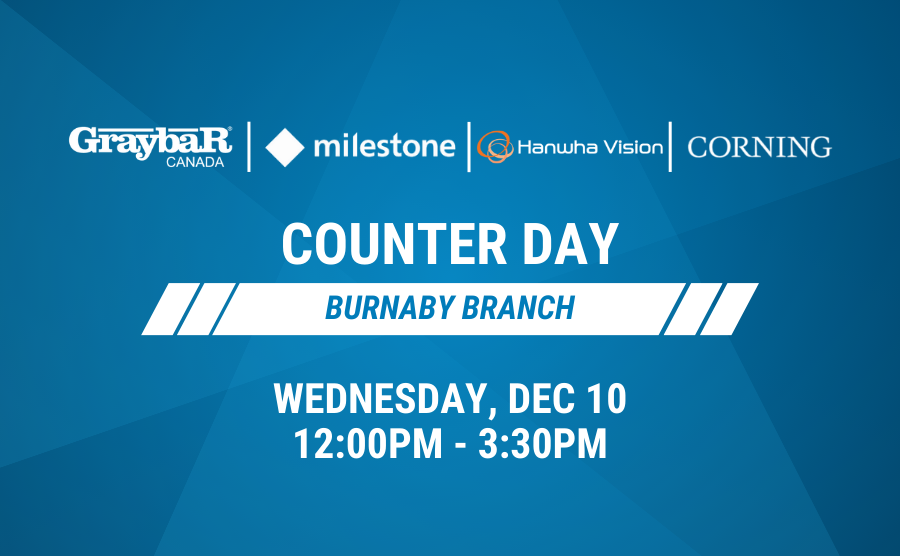 Join us at our Burnaby branch on Wednesday, December 10th, for a Counter Day featuring Milestone, Hanwha, and Corning! Stop by to explore new products and meet these teams! |