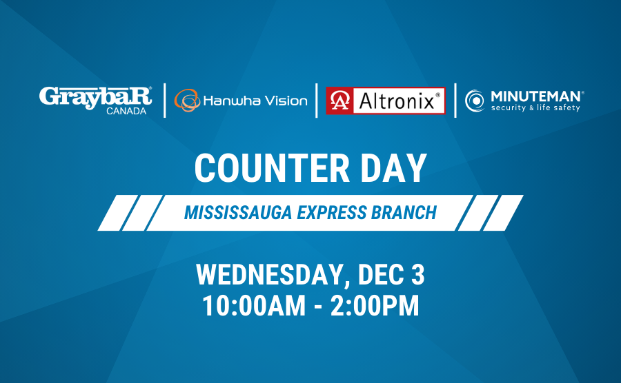 Join us at our Mississauga branch on Wednesday, December 3rd, for a Counter Day featuring Hanwha, Altronix, and Minuteman! Stop by to check out new product demos, explore new solutions, and enjoy free coffee and treats. ☕🍪 |