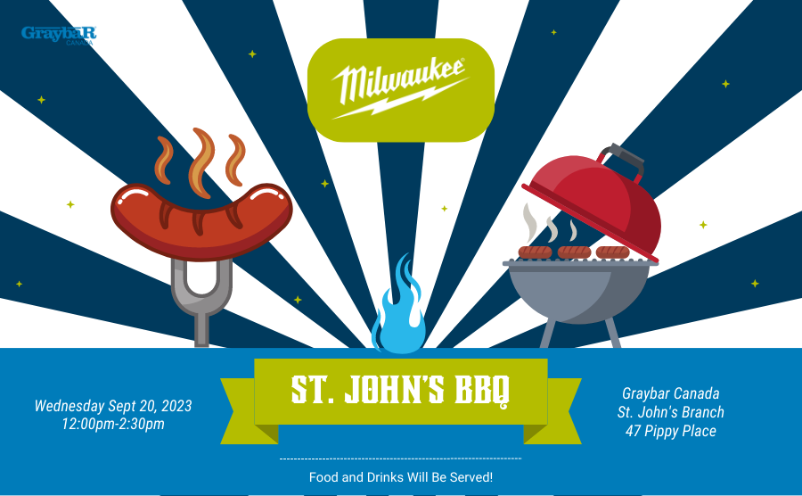 Join us at the St. John's, NL Branch on October 24th for the 2024 Milwaukee Electrical Event. This event will be from 9:00am to 2:00pm. We'll be serving up a tasty BBQ from 12:00pm to 2:00pm. This event is extra special as we'll be highlighting Milwaukee! This is your chance to enjoy BBQ treats, learn about Milwaukee offerings and receive FREE swag items based on your eligible purchases. |